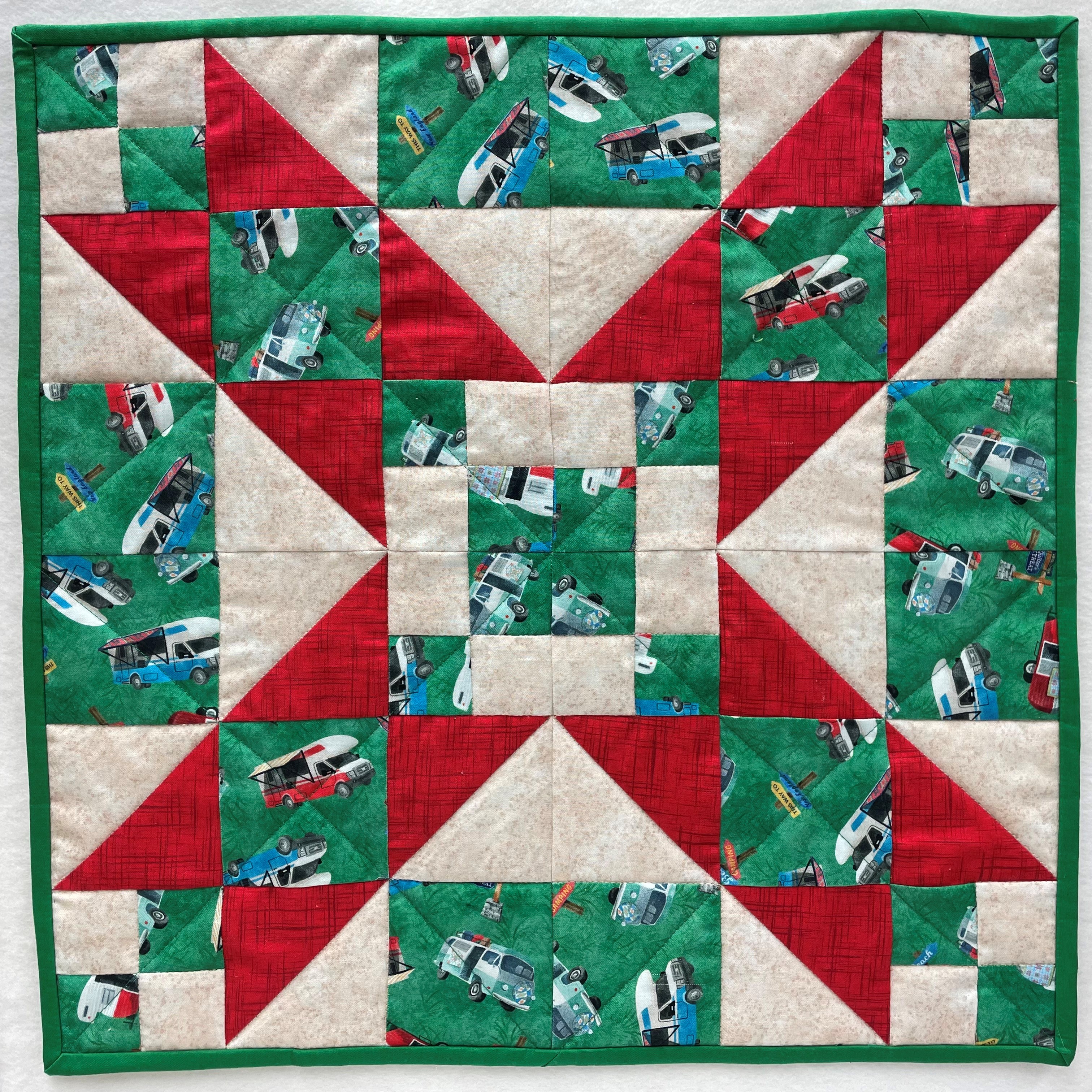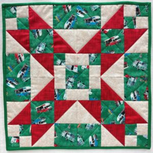 Red Barn Sewing & Yarn Center combined four blocks from our Quilt Block Pattern Card to create an 18″ x 18″ wall hanging.